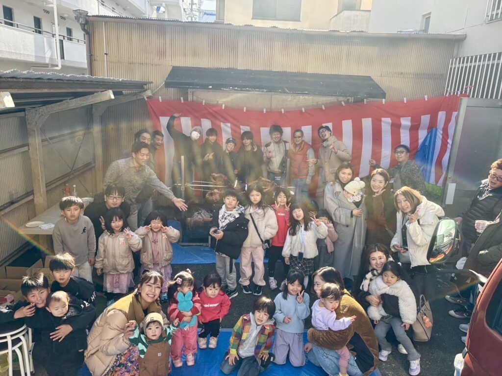 2025年6月14日に西多摩郡の如意輪幼稚園にて「豚の丸焼き」イベントに参加